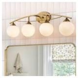Lucie 33.46 in. 4-Light Brass Bathroom Vanity Light with Opal Glass Shades