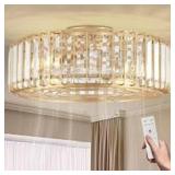 ARISKEEN 20 in. Indoor Gold Crystal Ceiling Fan with Light, Mid Century Gold Fandelier with Remote Control, 6 Speeds for Bedroom