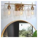 Modern Circle Bathroom Vanity Light 3-Light Brass Gold Round Powder Room Wall Sconce Light with Clear Glass Shades