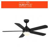 Morland 52 in. Smart Indoor/Covered Outdoor Matte Black Ceiling Fan with Remote and Integrated LED Powered by Hubspace