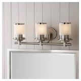 Truitt 23.25 in. 3-Light Brushed Nickel Vanity Light with Frosted and Clear Edge Glass Shades