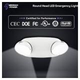 MEDINAH POWER Integrated LED Emergency Light with 2 Round Adjustable lamps, 90 Min Backup, Damp Rated, UL Listed, 120/277VAC, White