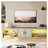 (153) 80 in. Light Grey TV Stand Fits TV's Up to 85 in. with Cabinet and Adjustable Glass Shelves