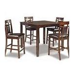 Set the scene for cool, comfortable and ultra-contemporary style with this counter table set. Counter-height design makes eating in feel more like dining out at a trendy pub. Richly upholstered in a practical faux leather with welcome back supports, the four bar stools are sure to satisfy.