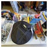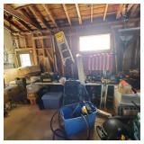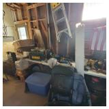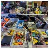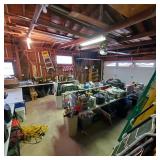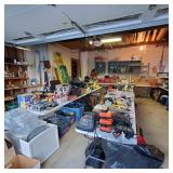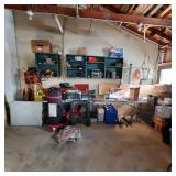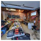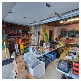 Additional tools and hardware filling the garage from wall to wall ---