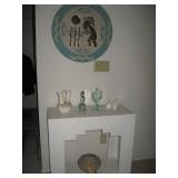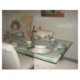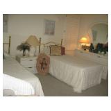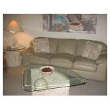 | Leather sofa and matching love seat; Two twin beds with frames; King mattress set with frame; Dressers; night tables; glass dining room table with four chairs; very nice display china hutch; chairs; coffee table set; casual dinette set with four chairs and one leaf; patio table with six chairs, four lounge chairs; BBQ; refrigerator, lawn mower; Austin figurine "Acoma" ; women clothing; and much HH (household) items. |