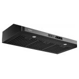 (96) 36 inch Black Undercabinet Range Hood, 980CFM Kitchen Range Hood with 3-Speeds Gesture Sensing & Touch, Stainless Steel Kitchen Vent Hood with Permanent Baffle Filters, Top and Rear Vents