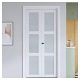 3-Lite Frosted Glass and Solid Manufactured Wood Bi-Fold Doors with Hardware Kit