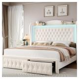 This classic tufted and upholstered bed can offer you a luxury sleeping experience. Covered with top velvet, this storage bed will have you feeling sheltered in comfort and luxury. The headboard has 9 colored LED lights, with 6 brightness adjustments and 3 lighting modes, which can be adjusted to the comfortable and non-glaring eye adaptation brightness at night. The shelf headboard is a perfect place for glasses and photos to keep your room clean and tidy. This upholstered platform bed with storage drawers can provide you with ample space for bed sheets, off-season clothing, etc, which can make full use of the under-bed space.