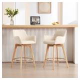 Lovetro Swivel Full Back Arms Upholstered 25.8"H Counter Stool with Solid Rubberwood Frame and Gold Footrest (Set of 2)