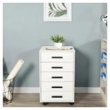 The versatile 5-Drawer Cabinet is suitable for any individual and room. Featuring five drawers with sleek, modern handles, it offers easy access and organization for items ranging from paperwork to makeup. This rolling cabinet ensures everything is neatly stored and within reach, making it a practical addition to any space.