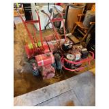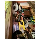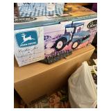 Clock collection, Pyrex, John Deere tractor cookie jar, cabinet, wooden high chair, lamp, John Deere 7420 tractor in box, oyster tin, knives (pocket & hunting), runner sled, microwaves, portable air conditioner (new), sewing machine table, Corelle, Tupperware, bowls, bookshelf, dressers, cedar wardrobes, chests of drawers, Jeff Gordon items, china cabinet, hats, carnival glass, 2 drawer filing cabinet, beds, stereo, lamp table, lantern, wicker bassinet, rocker, 8-tracks, coolers, Christmas, garden tools, stacking toolbox, hand tools, Troybilt rear tine tillers, Stihl SG20 backpack sprayer, cement tools, shop vac, floor jack, doors, sprayers, spreaders, garden seeder, chairs.