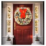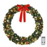 UBesGoo 48in LED Christmas Wreath, Illuminated Artificial Holiday Garland for Door and Wall Decor