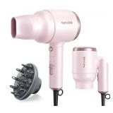 Wavytalk Blow Dryer with Diffuser, Mini Hair Dryer with Folding Handle, 1600W Quiet Lightweight Hairdryer with Diffuser Compact Design, Pinky White