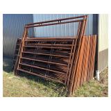 = Steel Cattle Panels With Two Gates = 22 Panels Total = 2 Gates With Entry Ways = Seller States " Made By Corbin Steel" = 2 Gates Measure: 10' Long x 94" Tall ( Including Entry) = 22 Panels Measure: 10' Long x 70" Tall Each = Heavy Duty Square Tube Construction = All One Money! = Buyer Responsible For Removal Of All Items