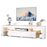 【High Gloss】TV stand for 85+ inch TV with simple high gloss fronts and matte texture body make this corner tv stand exclusive and durable. Provides a modern touch to most home decorations
