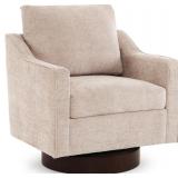 【Structural Design】Our swivel accent chair features a sturdy base connection that enables smooth 360-degree rotation, ensuring long-lasting durability. If you hear any noise while rotating, please contact us directly. Unlike traditional straight armrests, our ergonomic track armrest design provides better support for you. The wide backrest cushion lets you fully relax and enjoy a comfortable seating experience.