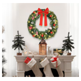 Elevate your entryway with this elegant 24-inch pre-lit wreath, featuring 50 warm LED lights and a festive blend of decor.