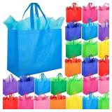 30 Pcs Large Goodie Bags with Tissues - 12x10" Reusable Non Woven Treat Tote Gift Bag with Handles for Kids Birthday, Holiday Gift Bag, Baby Shower, Rainbow Party Favor Bags (ONLY ORANGE, BLUE AND BLACK)