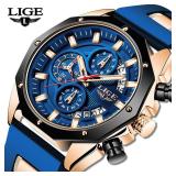 LIGE Men's Watch Fashion Chronograph Stainless Steel Waterproof Analog Quartz Luminous Large Dial Sport Classic Watch
