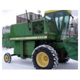 Combines/Harvesting: John Deere 3300 combine w/3RN corn head & 9’ grain head; Brent 472 Grain Cart; John Deere 6620 Titan 2 Combine – field ready; Pequa header cart; JD 443 Corn Head; J&M 350 Gravity Wagon; Ficklin 435 Gravity Wagon; John Deere 40’ elevator w/gas engine; hyd. Drive fodder spreader for combine; (6) stalk stompers w/brackets for JD heads; New Idea corn picker; Killbros gravity wagon w/ext. sides.