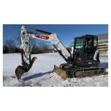 Skid Steers/Excavators/Dozers: Like New 2025 Bobcat E60 Mini Excavator w/cab, heat, air, Long Arm, hyd. Thumb w/diverters, Bobcat Xchange, heated high back seats, backup camera & 385 hrs.; Nice 2019 Bobcat E50 Mini Excavator w/cab, heat, air, Long Arm, hyd. Thumb, Bobcat Exchange, & 2175 hrs; 2016 Case TR270 Track Skid Steer w/cab, heat, air, & 2140 hrs; Komatsu D21 Dozer w/6 way blade, good undercarriage, & 3200 hrs.