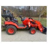 Tractors: John Deere 4230 Diesel w/cab & 3,816 hrs.; 2021 Kioti CS2520 4WD diesel compact tractor w/HST trans, QT loader & only 87 hrs; Ford 8N, Ford 9N w/good rubber; Oliver 88 diesel w/3 pt. (not running); Kubota L3010 HST 4WD diesel w/ Bush Hog 2246 QT loader & 2518 hrs.