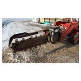 Attachments & 3 pt. Equip: Skid steer bucket; 3 pt. fertilizer spreaders; PTO buzzsaw; King Kutter 3 pt. ripper; Little Beaver post hole digger w/3 bits (gas power); 3 pt. fertilizer spreader; new 3 pt. 4’ driveway leveler; new Land Pride 3 pt. 5’ blade; euro bale spear; 3 pt. post auger; 5’ brush hog; Dearborn 2x plow; 1x plow; 7’ back blade; Woods 255 front end loader with mounting kit for Case IH 51/5200 series tractors, equipment lifting boom, and QT adapter kit; Lowe 21C QT Skid Steer Trencher; new Stout 66” QT brush grapple, 84” QT brush grapple, & 72” QT rock grapple; Yanmar 3 pt. 62” tiller; new 72” QT tiller; new Tar River 4’ landscape rake; new Mahindra 6’ blade; King Kutter 3 pt. potato plow; Servis 5’ HD brush mower; JD 603 6’ brush mower; 3 pt. 9’ hyd. Angle blade; 3 pt. spike tooth harrow; drag disc & springtooth; Sears 3 pt. rototiller; 3 pt. 1x two way plow; 3 pt. bale carrier; 4’ 3 pt. disc.