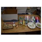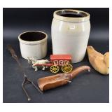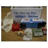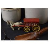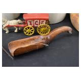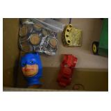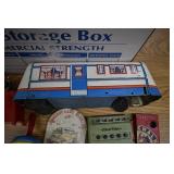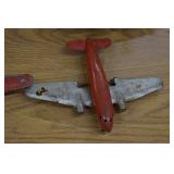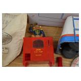47           Wind Up Ohio Art Tin Boat and Plastic Horse w Rider