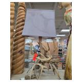 Table Lamp With Bamboo Motif and Fabric Shade |