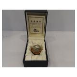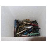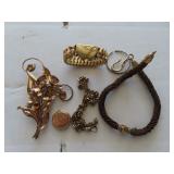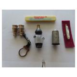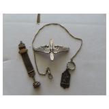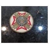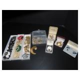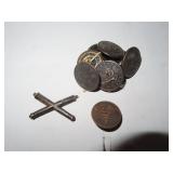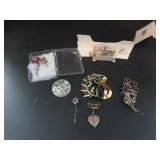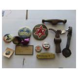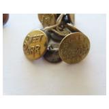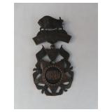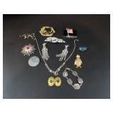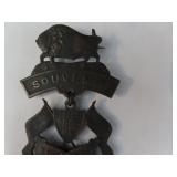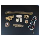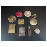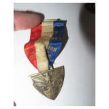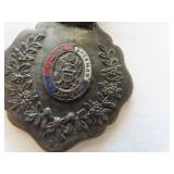 COSTUME JEWELRY, ENCAMPMENT BADGE, ETC: 2nd Auction Ring @ 10:30: Pair Rare Bone Stanhope Miniature Binocular Viewers (Napoleon Scene & Palisades Mohican Cove Scenes), Basilique De Nid De Lourdes Pic in Locket, Sterling Top Ladies Mesh Handbag, Beaded Bags, Costume Jewelry, Necklaces, Brooches, Rings, Earrings, Bracelets, Pinbacks, Cameo's, Compacts, Sterling Bracelets, (2) Victorian Skirt Lifters, $1 Master Metal Scrip Coin (Coonville Company Store), 1883 Woman's Relief Corp Medal, 1897 31st Nat'l Encampment Badge, 1907 Sons of Veterans Badge, WWI Victory/Welcome Home Medal, Early Military Buttons & Insignia, Masonic Trowel, Sweet Orr Buttons (Work Clothing), Nixon Bronze w/Political Badge & Box, (2) Masonic Pins, Odd Fellows 25yr Medal, Aetna Pocket Mirror, (5) Glass Eye Balls, Buttons, Belt Buckles, few Ink Pens & More!