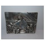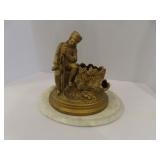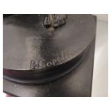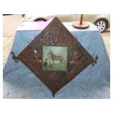 ANTIQUES & COLLECTIBLES: FURN: Walnut Victorian Bed w/recessed panel Headboard, Dawley Mission Oak Center Drawer Desk w/bookshelf ends, Victorian 8-drawer Collector's Cabinet w/embossed brass pulls, Early Burl Single Door Stand, Oak Scallop Shell Back Rocker, Oak 6' & 10' Church Pews...SMALLS: Spanish American War Hammered Copper Coat/Hat Rack (18"sq), Rare Griswold Odorless Skillet, Gilt Man w/Walking Stick Cigar & Match Holder, Mt Washington Lamp Base, Austin Sculpture "Narcissa" after Paulo Capellaro, Marble Child's Bust, Bronze 5" Baby Bust, Composition 15" Nude Sculpture, Loretta Foster Navajo Alabaster Sculpture, Carved 28" Stork & 26" Giraffe, Hanau Dental Torch, Mother of Pearl Handle w/ Sterling Band Knife & Fork Set in case, Silver Plate Collar Box, (4) Figural Silver plate Toothpick Holders, Halcyon Days Bonbonnieres, Chrysanthemum Mini Oil Lamp, Foxborough Ship's Clock Converted to Lamp, (2) Early Oil Lamps, Betty Lamp, NRI Model 70 Tube Tester, Tin Litho Child's Dishes & Tray, Trooper Cap Gun, Books & Ephemera, Antique & Collector Ref Books....ADVERTISING Firestone Tire Holder Sign (10x8), Ande Rooney Sinclair Aircraft Pump Sign (11-1/4), Coca Cola Cooler Radio, Durkee Spice Wood Box, Schlitz Beer Bottle Flashlight, Penna Rubber Co Ashtray/Match Holder, (4) New Bremen Adv Picture Thermometers, Jane Parker Potato Chips 1lb Tin, Mid Earth Mineral Soap Display, Old Store Stock items, Later Movie Posters....QUILTS & SOFT GOODS: Bear Paw, Robbing Peter to Pay Paul, Prince's Feather, Drunkard's Path, Dresden Plate, Lone Star, Window Pane, Crib Needlepoint Quilt, Afghani 3x5 Prayer Rug, Early Throw Rugs, WWII Silk Pillow Covers, Berman's Leather & Fringe Jacket....WALL ART: Richard Timm Animal Prints Folio, Juanita McFarland (Athens) Azalia Delight Watercolor, Bessie Pease Gutman Sweet Dreams, Chessie & Kittens, 1945 Nursery Rhymes, Ray Harm Prints & Many More Prints!