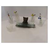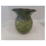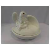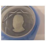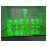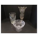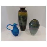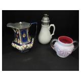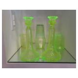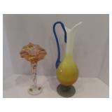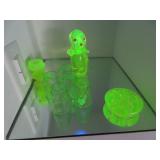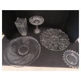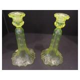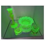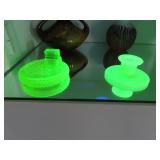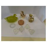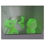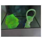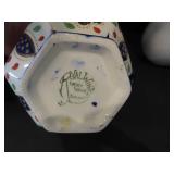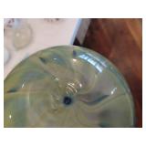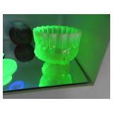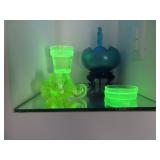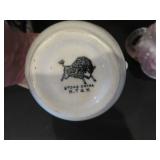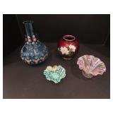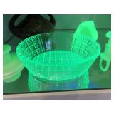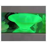 GLASSWARE & POTTERY: Fenton Celeste Blue Stretch Bowl w/Nymph, Fenton Regal Peacock Burmese Vase, Fenton Silvercrest Cased h.p. Vase, Fenton Cranberry Coin Dot Vase, Fenton Rosalene Bowl, (7) Erickson Emerald Flame Ice Tea's, Imperial Marigold Carnival Tiger Lily Drink Set, Imperial Red Slag Bowl, Viking Amberina Stretch Vase, Albert Jacob Thewalt Germany Stein Ashtray, Baccarat Paperweight, Mt Washington Shell Pattern Biscuit Jar, Rubina? Syrup, Chaver Navajo 6" Feather Vase, Nippon Moriage Vase, Flambeau Limoges Shore Bird Charger, Royal Doulton "Rustic England" Charger, (3) Large Delft's Chargers, Westmoreland Eagle on Nest, Duncan Pheasant, Heisey, Fostoria, Hawkes Cut Relish, Metlox "Poppytrail" China, Royal Winton Gaudy Dutch Tea Pot, Wedgwood Biscuit Jar, Krayec Studios Finger Candle Holder, Buffalo Pottery Syrup, Buffalo Morgan's Tavern Charger, (7) Early Cut Liquor Bottles, Art Glass, Cobalt Glass, Cut Glass, EAPG, Hello Kitty Astrology Plates, Salt & Peppers, 25+pcs URANIUM GLASS inc Candlesticks, 10" Stretch Glass Bowl, Lamp Shade, Water Bottle/Tumbler, Daisy & Fern Lamp, Footed Plate, Basket, Daisy & Button Canoe, etc....POTTERY: 1954 Rookwood Egret, JB Owens "Utopian" Standard Glaze 2-handle Vase & 5" Vase, Van Briggle "Three Graces" Floor Vase, Van Briggle Maiden Mint Dish, McCoy Leslie Cope "Market Lady" Cookie Jar w/Box, Hull Bow Knot Tea Pot, Foltz Pottery Redware Bowl, WELLER: Patra 9" Vase, Wild Rose Vase, ROSEVILLE: Fuchsia 8" Bowl, Pine Cone Planter w/Underplate, Ixia 8-1/2" Vase, etc!