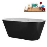 (13). Streamline 59 in. x 30 in. Acrylic Freestanding Soaking Bathtub in Glossy Black with Matte Black Drain