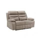 (14). Lazzara Edelia 64 in. W Latte Leather Manual Double Reclining 2-Seater Loveseat