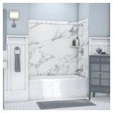 (207). FlexStone Elite 32 in. x 60 in. x 60 in. 9-Piece Easy Three-Piece Glue Up Adhesive Tub Surround in Silver Strata