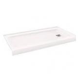 White 60x30 porcelain-finished shower pan with square right drain Direct replacement size for industry-standard 5 ft. bathtub Built-in leveling support pad makes installation quick and easy