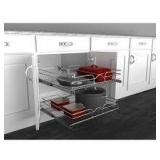 Each basket moves out independently Shelves include a scratch-resistant frosted nickel finish All installation hardware is included