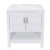 Constructed of environmentally friendly, high grade solid wood, plywood, and MDF, engineered to prevent warping and last a lifetime 12-stage wood preparation, sanding, painting, and finishing process Highly water-resistant low V.O.C. sealed finish Beautiful transitional styling that complements any bathroom Practical Floor-Standing Design Minimal assembly required Deep Dovetailed Drawers Fully-extending under-mount soft-close drawer slides Concealed soft-close door hinges Interior Drawers with Configurable Dividers Recessed toe kick Counter options include White Carrara Marble, White Cultured Marble, Light-Vein Carrara Cultured Marble Counter includes 3" backsplash backsplash comes in two pieces (cut from one single piece due to high probability of breakage)