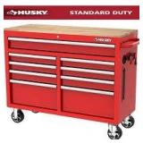 Husky Tool Storage 46 in. W x 18 in. D 9-Drawer Gloss Red Mobile Workbench Cabinet