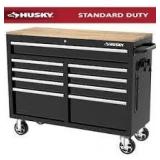 Husky Tool Storage 46 in. W x 18 in. D 9-Drawer Mobile Workbench Cabinet in Gloss Black