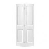 - The raised 2 panel bi-fold door is constructed of high quality MDF, a composite material milled in a one-piece frame to withstand changes in heat and humidity better than solid wood.