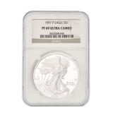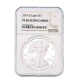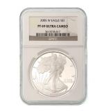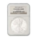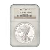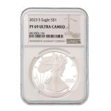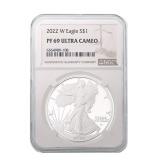 FEATURED AUCTION ITEMS: Lot Number Lot Title 1000 2014-W 50th Anniversary .9999 Fine Gold Kennedy Half Dollar 1001 323-317 BC Macedon Philip III AR Drachm NGC Ch VF 1002 Lot of 38 Consecutive 1986-2022 American Silver Eagles 1003 AD 98-117 Roman Empire Trajan AR Denarius NGC F SPQR Collection 1004 RARE! GSA Hoard 1883-CC Morgan Silver Dollar NGC MS63 1005 1985 $10 Green Seal San Francisco Federal Reserve Bank Note PMG 58 EPQ Printed Fold Error Fr.2027-L 1006 Vintage Johnson Matthey 100 Troy Oz .999+ Fine Silver Bar 1007 2023-S Morgan & Peace Silver Dollar Advanced Release Two Coin Reverse PF70 Set 1008 1909-S Indian Head Cent 1009 AD 1198-1219 AD Armenia Levon I AR Tram NGC XF 1010 2019-W $50 American Gold Buffalo Early Issue PCGS PR70DCAM 1011 2000-W $10 Library of Congress Bimetallic Gold & Platinum Proof Coin 1012 RARE! GSA Hoard 1884-CC Morgan Silver Dollar NGC MS64 1013 After Circa 58 BC Indo-Scythians Azes I/II AR Tetradrachm NGC Ch XF 1014 1993 WW2 50th Anniversary Commemorative Gold & Silver Proof 3 Coin Set 1015 1911 $5 Indian Head Gold Half Eagle 1016 Lot of 25 2021 Canada 1 Troy oz .999 Silver $5 Maple Leaf BU 1017 1884-O Morgan Silver Dollar NGC MS64 1018 Lot of 4 Australia High Relief Silver Dollars NGC PF 70 ULTRA CAMEO 1019 2021 U.S. Mint American Silver Eagle Collection Limited Edition 6 Coin Proof Set 1020 1928A $100 Chicago Federal Reserve Green Seal Bank Note Fr.2151-G 1021 1754 LM-JD Peru 8 Reales NGC UNC Details Excavation Recovery 1022 2005-P Marines Corps Commemorative Silver Dollar NGC PF70 ULTRA CAMEO 1023 1999 $5 American Gold Eagle 1024 Lot of 150 Assorted Presidential Golden Dollars 1025 1875-CC Seated Liberty 20 Cent Piece 1026 2000 American Platinum Eagle 4 Coin Set 1027 2021-CC Modern Anniversary Morgan Silver Dollar 1028 Lot of 62 Assorted Barber Silver Dimes 1029 1872 Seated Liberty Half Dollar 1030 1896-A France Gold 20 Francs Fasces Privy Mark NGC AU58 1031 Lot of 20 1992 American Silver Eagles 1032 Byzantine Empire AD 1195-1203 Alexius III Aspron Trachy NGC Ancients XF 1033 Lot of 14 1922 Silver Peace Dollars 1034 2020 Mayflower 400th Anniversary Reverse Proof Silver Medal PCGS PR70 1035 2016-W 1/10 oz .9999 Gold Mercury Dime Early Release NGC SP70 1036 Full Pack of 100 Consecutive 2017 $1 Green Seal Chicago Federal Reserve Notes. 1037 1854 $3 Gold Indian Princess Head 1038 2023-S Morgan & Peace Silver Dollar Reverse Proof Two Coin Set 1039 Lot of 8 Consecutive 1999-2006 U.S. Mint Silver Proof Sets 1040 Lot of 36 Assorted Barber Silver Quarters 1041 Lot of 3 Early $1 Federal Reserve & Silver Certificate Bank Notes 1042 AD 81-96 Domitian AR Denarius Issued as Caesar NGC FINE 1043 Lot of 2 2024-S Morgan & Peace Silver Proof Dollar 1044 Lot of 6 Assorted Seated Liberty Silver Coins 1045 2019-W $50 American Gold Eagle Early Issue PCGS PR70DCAM 1046 2019-S American Silver Eagle Enhanced Reverse Proof First Strike NGC PR69 with COA 1047 Lot of 2 2023 Morgan & Peace Silver Dollar Advanced Releases U.S. Mint Designer Series NGC MS70 1048 2018 U.S. Mint Limited Edition Silver Proof 8 Coin Set 1049 Lot of 3 Assorted $20 Green Seal Federal Reserve Bank Notes 1050 1911 $10 Indian Head Gold Eagle Type 2 with Motto 1051 Lot of 80 1948-1963 Franklin Silver Half Dollars 1052 1877 Indian Head Cent 1053 ca 390-360 BC Dynasts of Lycia Mithrapata AR Sixth-Stater NGC VF 1054 1988 Olympics Commemorative Gold & Silver Proof 2 Coin Set 1055 Lot of 3 Carson City Seated Liberty Silver Coins 1056 1944-S Walking Liberty Silver Half Dollar NGC MS64 1057 1887-A France Gold 20 Francs UNC Details 1058 Lot of 7 Assorted Proof American Silver Eagles 1059 1946 Iowa Commemorative Silver Half Dollar NGC MS64 1060 Lot of 7 Assorted Sealed 1961-1964 U.S. Mint Silver Proof Sets 1061 1859 France Gold 10 Francs 1062 RARE! 1960s Engelhard 10 Troy Oz .999 Silver "P" Loaf Bar 1063 Lot of 43 1976 Bicentennial $2 Green Seal Atlanta Federal Reserve Canceled FDOI Bank Notes Fr. 1935F 1064 9/8 BC-AD 40 Nabataea Aretas IV & Shaqilat AE NGC F 1066 Lot of 8 U.S. Mint 50 State Quarters Silver Proof Sets 1067 2021 Silver Peace Dollar 100th Anniversary Commemorative Issue PCGS MS70 1068 2015-W $5 1/10 Oz American Gold Eagle Proof 1069 2017-P 1 Troy oz .999 Silver American Liberty 225th Anniversary Proof Medal 1070 1928 $20 St. Gaudens Gold Double Eagle 1071 2018 American Silver Eagle FDOI NGC MS70 1072 135-37 BC Maccabean Kingdom AE Prutah NGC CH F 1073 1857 Small Indian Princess Head Gold Dollar 1074 1878-CC Morgan Silver Dollar 1075 $500 Sealed Loomis Box, 50 Rolls of Half Dollars 1076 Lot of 2 2024 American Silver Eagle Proof Coins 1077 1836 $2.50 Classic Head Gold Quarter Eagle Script 8 1078 1947-D Standing Liberty Silver Half Dollar NGC MS64 1079 1914 $20 Blue Seal Federal Reserve Bank Note Fr.976 1080 2012 U.K. Royal Mint Britannia 4 Coin Silver Proof Set 1081 2012 Australia Year of the Dragon 5 Troy Oz .999 Silver Proof $8 Coin 1082 Lot of 2 2025-S Peace & Morgan Silver Proof Dollar 1083 2004-W $10 American Gold Eagle PF69 ULTRA CAMEO 1085 Lot of 55 Assorted Standing Liberty Silver Quarters 1087 1908 $2.50 Indian Head Gold Quarter Eagle 1088 Lot of 2 1929 $10 & $20 Atlanta Brown Seal Federal Reserve National Currency Notes 1089 2006-W $5 American Gold Eagle 1090 Lot of 6 Assorted Seated Liberty Silver Dimes 1091 1951 Booker T. Washington Commemorative Silver Half Dollar NGC MS64 1092 Lot of 20 2001 American Silver Eagles 1093 AD 244-249 Roman Empire Philip I AR Double Denarius NGC F 1094 Lot of 9 Consecutive 2007-2015 U.S. Mint Silver Proof Sets 1095 1904 $20 Liberty Head Gold Double Eagle NGC MS64 1096 Lot of 5 1 Troy Oz .999 American Silver Eagles UNC 1097 1838 $5 Classic Head Gold Half Eagle 1099 Lot of 15 Assorted U.S & Foreign Currency Certificates 1100 1986-S American Silver Eagle PF69 Ultra Cameo 1101 1987-S American Silver Eagle PF69 Ultra Cameo 1102 1988-S American Silver Eagle PF69 Ultra Cameo 1103 1989-S American Silver Eagle PF69 Ultra Cameo 1104 1990-S American Silver Eagle PF69 Ultra Ca