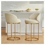 CHITA Counter Height Bar Stool, Swivel Barstools Set of 2, Upholstered Barstools with Backs, Matal Base, 26.8" Seat Height, (Sand/Gold Fabric)