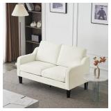 VINGLI Loveseat Mid-Century Modern Loveseat Sofa Couch 2 Seater Sofa Couch Love Seat with Scooped Armrest for Small Spaces, Living Room, Dorm, Bedroom, Apartment (Creamy White) (PHOTO FOR REFERENCE-STYLE IS THE SAME BUT FAUX LEATHER,FEET MAY BE A DIFFERENT COLOR AND SIDE POCKETS ON ARMRESTS)