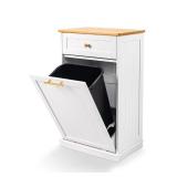 VINGLI 10 Gallon Tilt Out Trash Cabinet, Recycling Garbage Can Cabinet with Hideaway Drawer, Movable/Freestanding Pet Proof Storage Organizer, Modern Trash Can Kitchen Cabinet, White