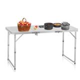 Outvita 3ft Portable Folding Camping Table, Outdoor Waterproof Adjustable Height Table, Aluminum Lightweight Suitcase Foldable Table for Picnic BBQ Beach Dining
