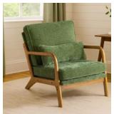 Mid Century Modern Accent Chair, Linen Fabric Armchair, High Back Single Sofa with Solid Wood Frame Orange