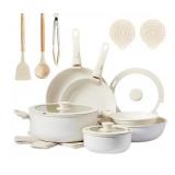 22 Pcs Nonstick Pots and Pans Set, Cast Aluminum Pots with Detachable Handles for Families, Apartments - White