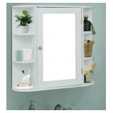 FCH Wooden Bathroom Storage Cabinet with Mirror Door & 8 Shelves, Wall Mounted Medicine Cabinet Organizer Spacesaver for Kitchen Laundry Room Hotels Home, White